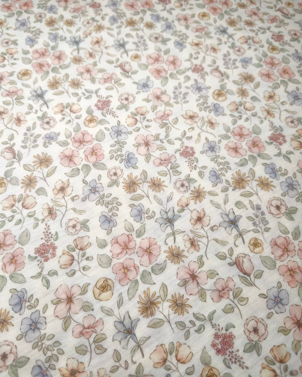 RIB DRUKOWANY 100% WEŁNA MERINO - KWIATKI ŁĄCZKA