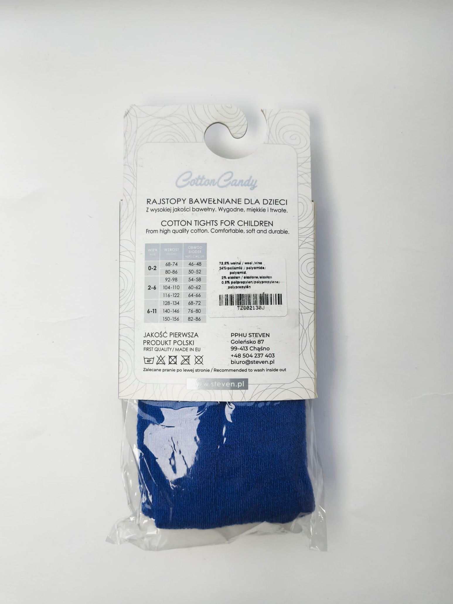 Rajstopy dziecięce z wełny merynosa 92/98 niebieskie