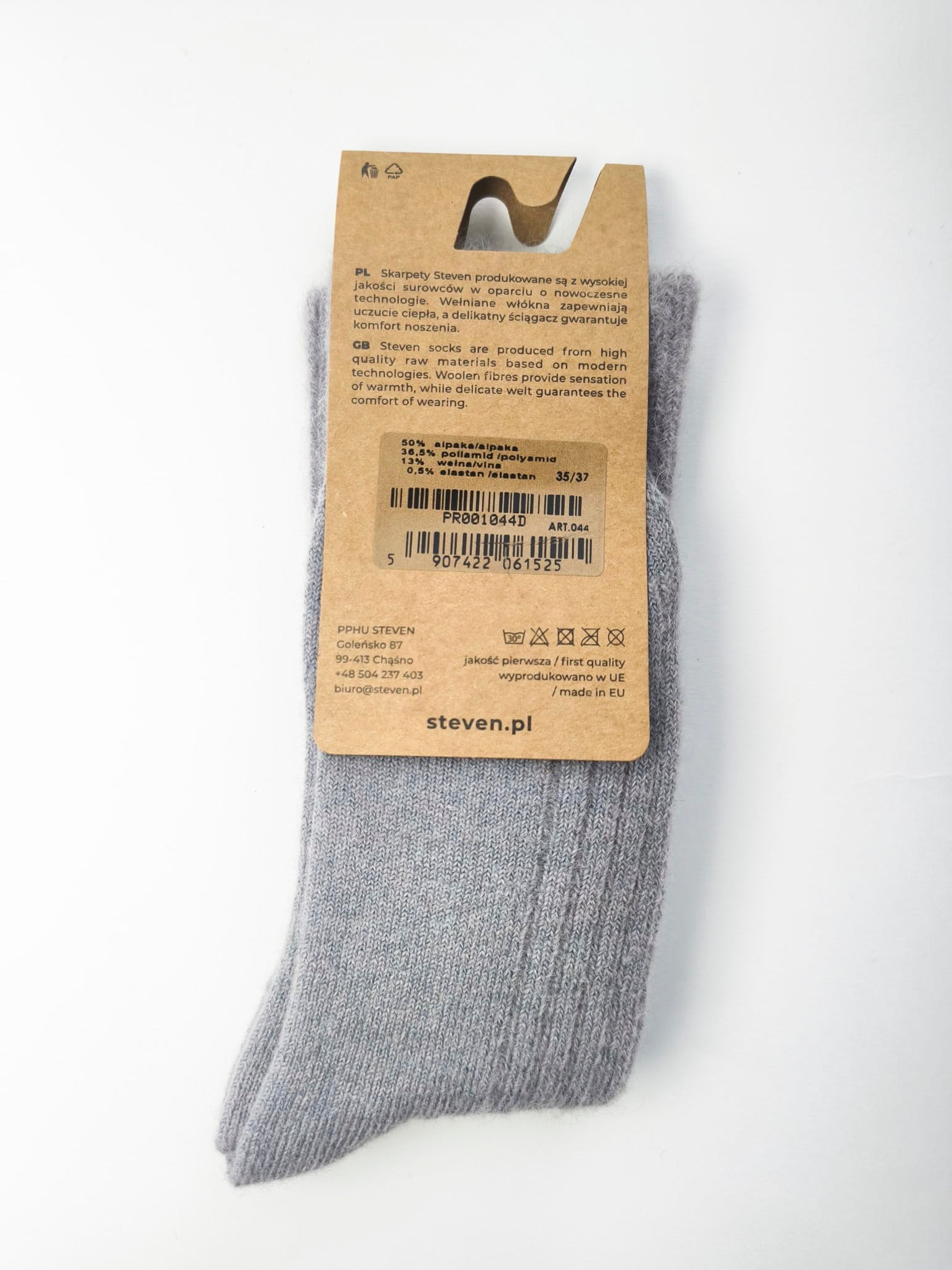 Bardzo wygodne, bezszwowe skarpetki wykonane w 50% z wełny alpaki gwarantują ciepło i komfort podczas noszenia. Skarpetki są puchate i miękkie w dotyku, a dzięki prążkowanemu materiałowi, nie powodują żadnego ucisku na stopie.