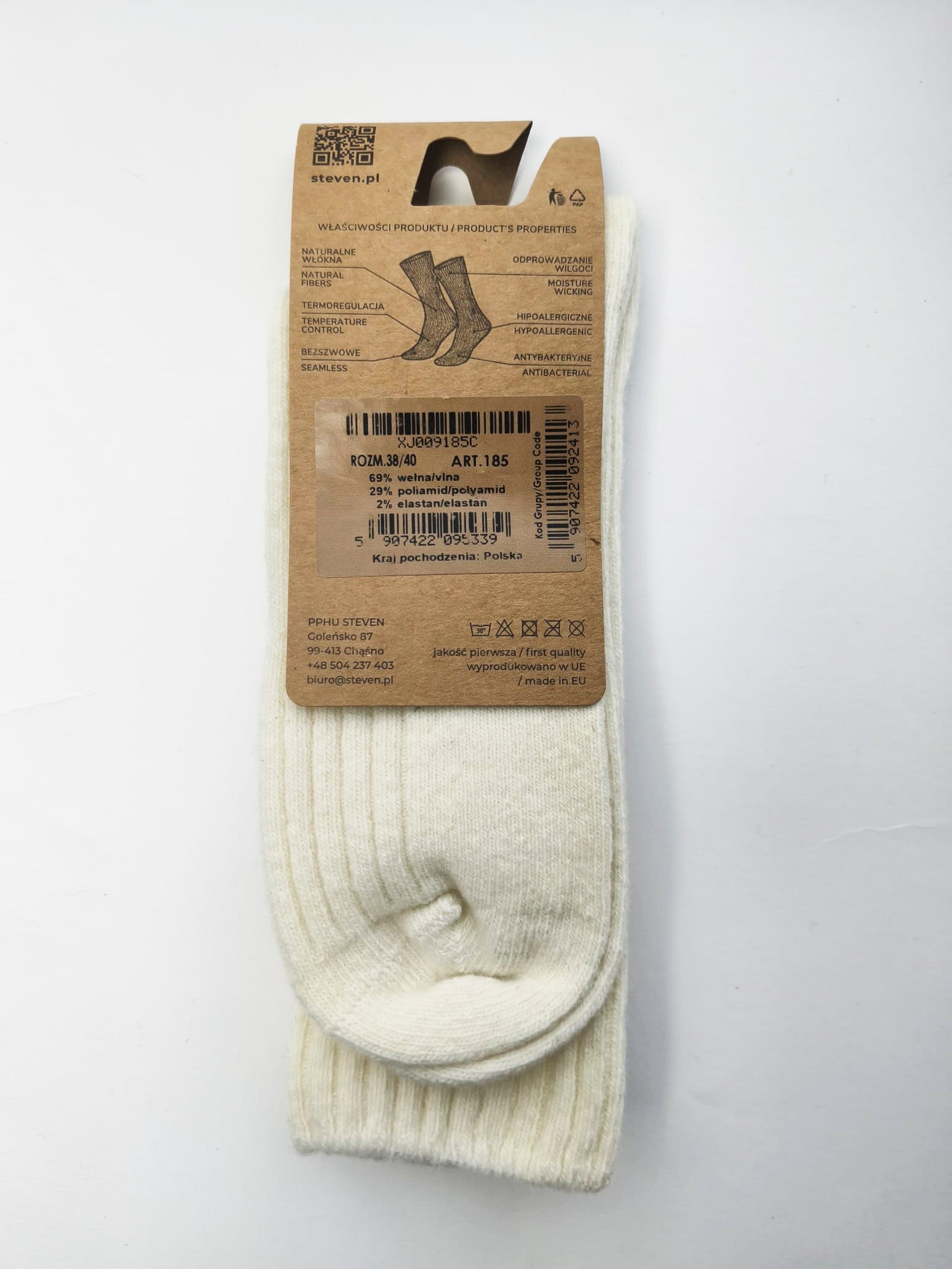 Skarpety z wełny jagnięcej 38/40 prążek ecru