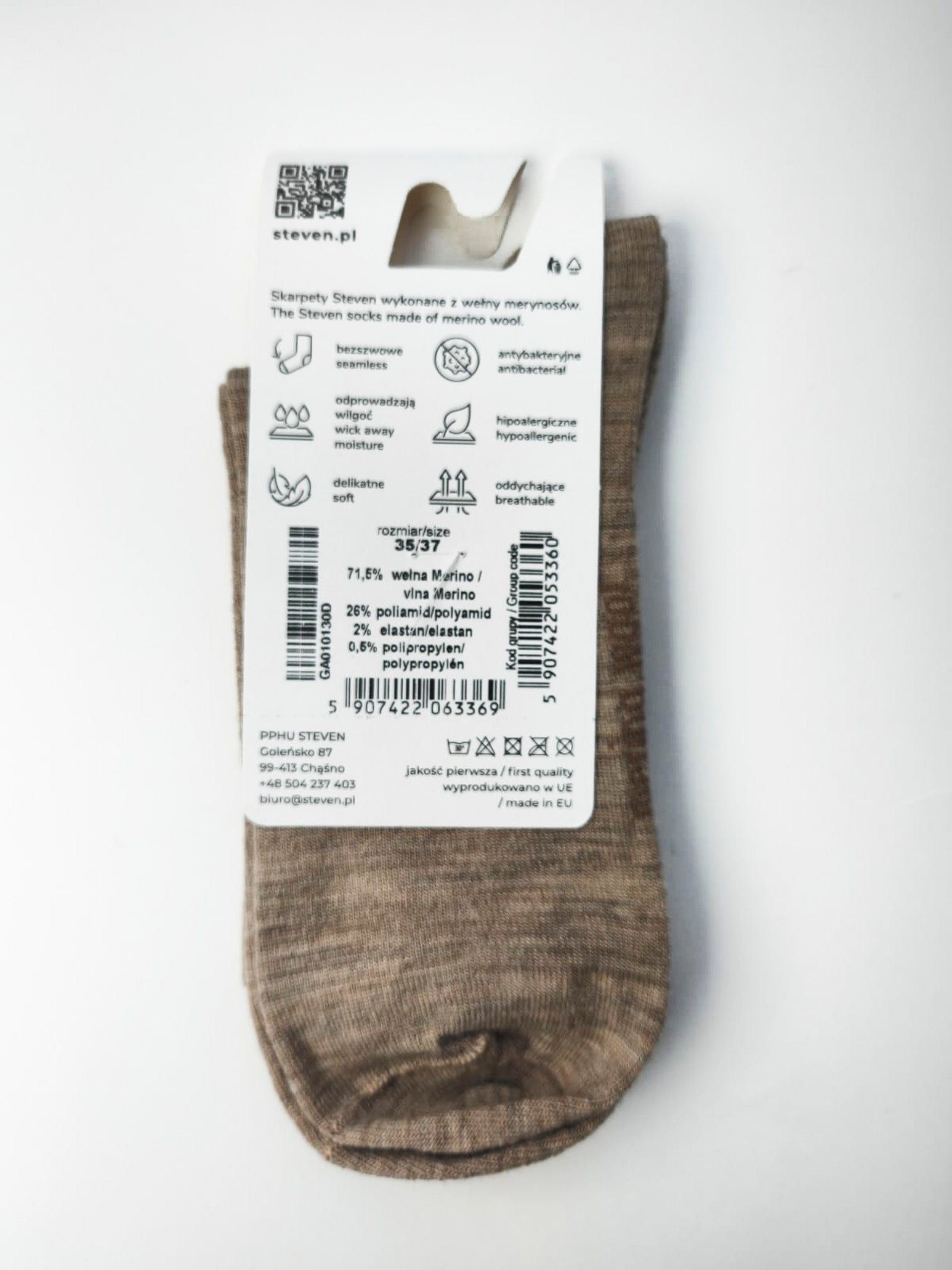 Pranie skarpetek: Pierz ręcznie w letniej wodzie lub w pralce w programie do wełny na max 30 stopni. Pierz w płynach do prania wełny. Nie używaj płynu do płukania!