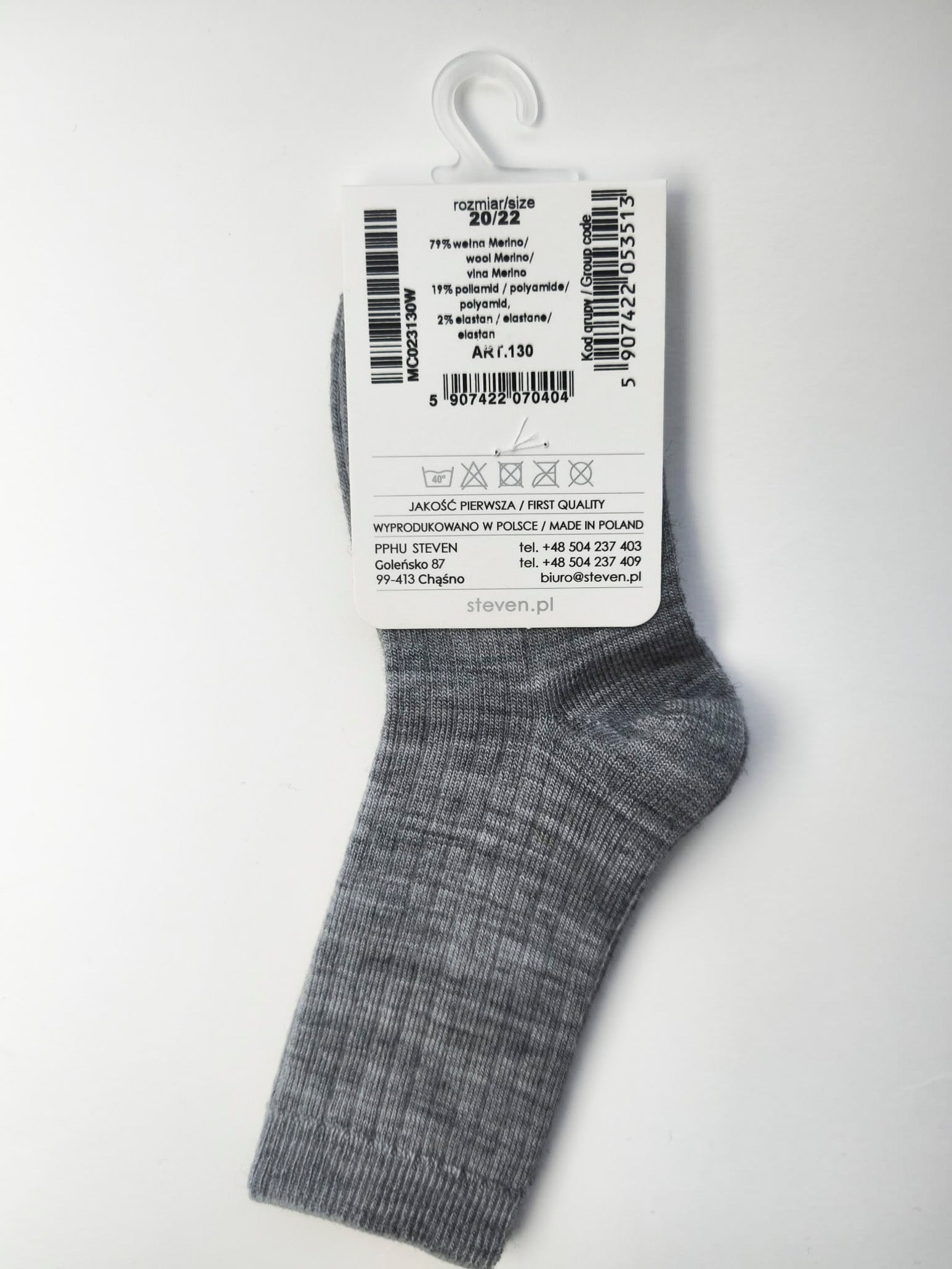 Skarpety z wełny merynosów dziecięce prążek 20/22 melanż szare