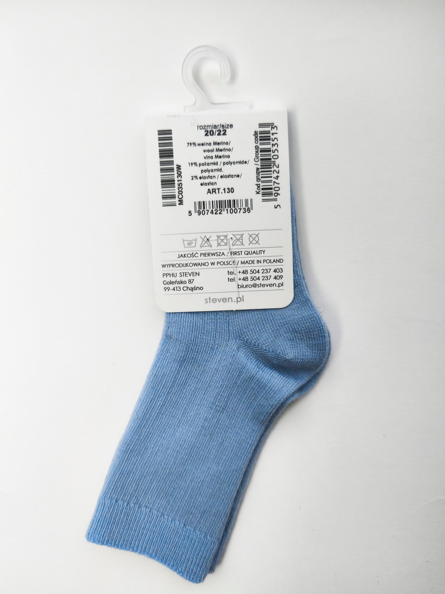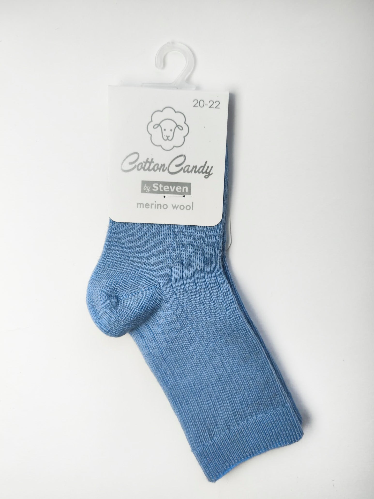 Skarpety z wełny merynosów dziecięce prążek 20/22 niebieskie