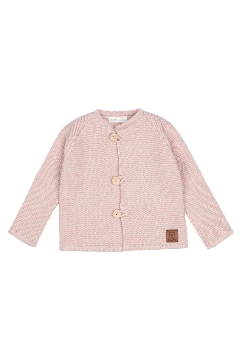SWETEREK WEŁNIANY Z GUZIKAMI - PUDROWY RÓŻ rozmiar 86