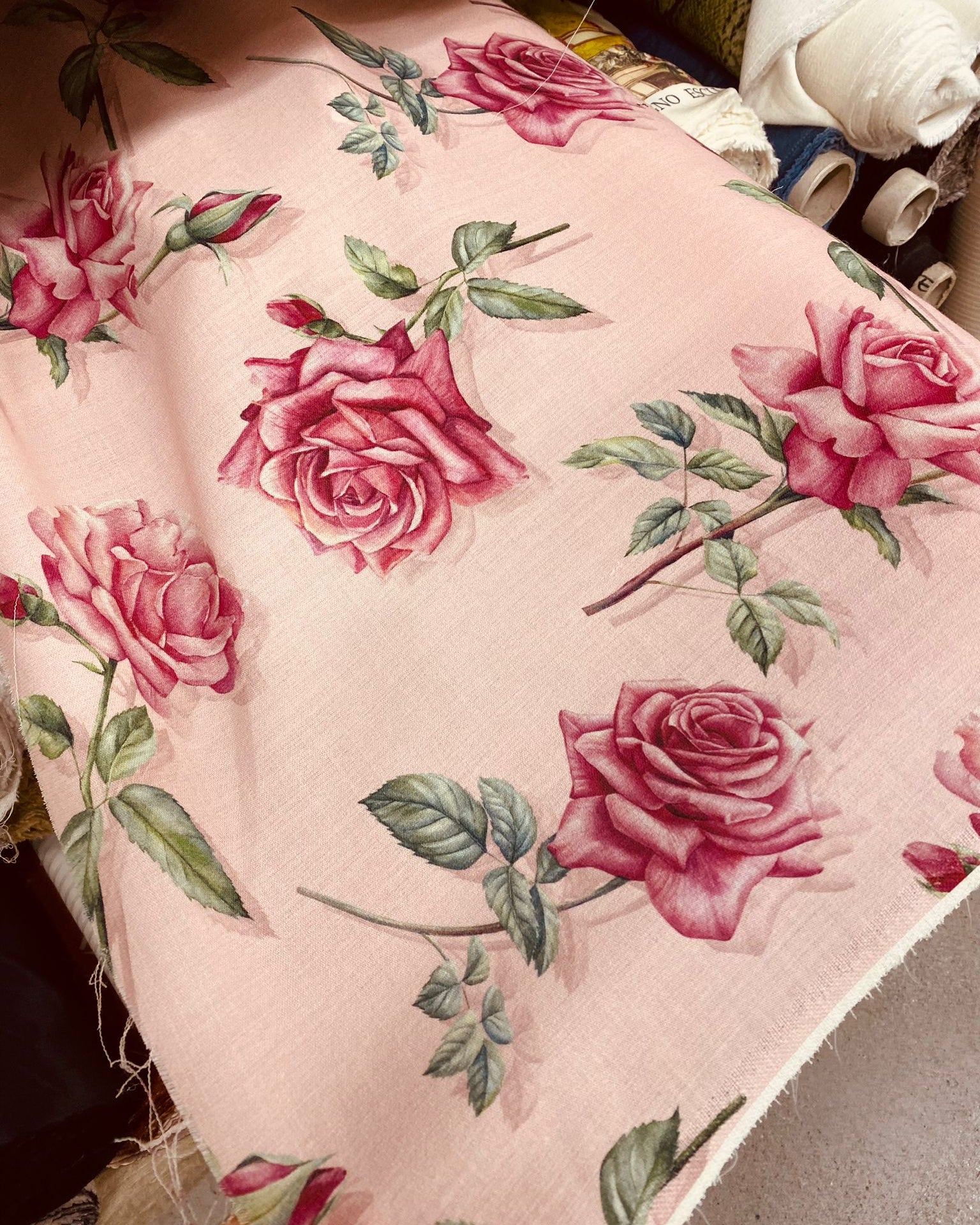 TKANINA WEŁNIANA DRUKOWANA - DZIKIE RÓŻE